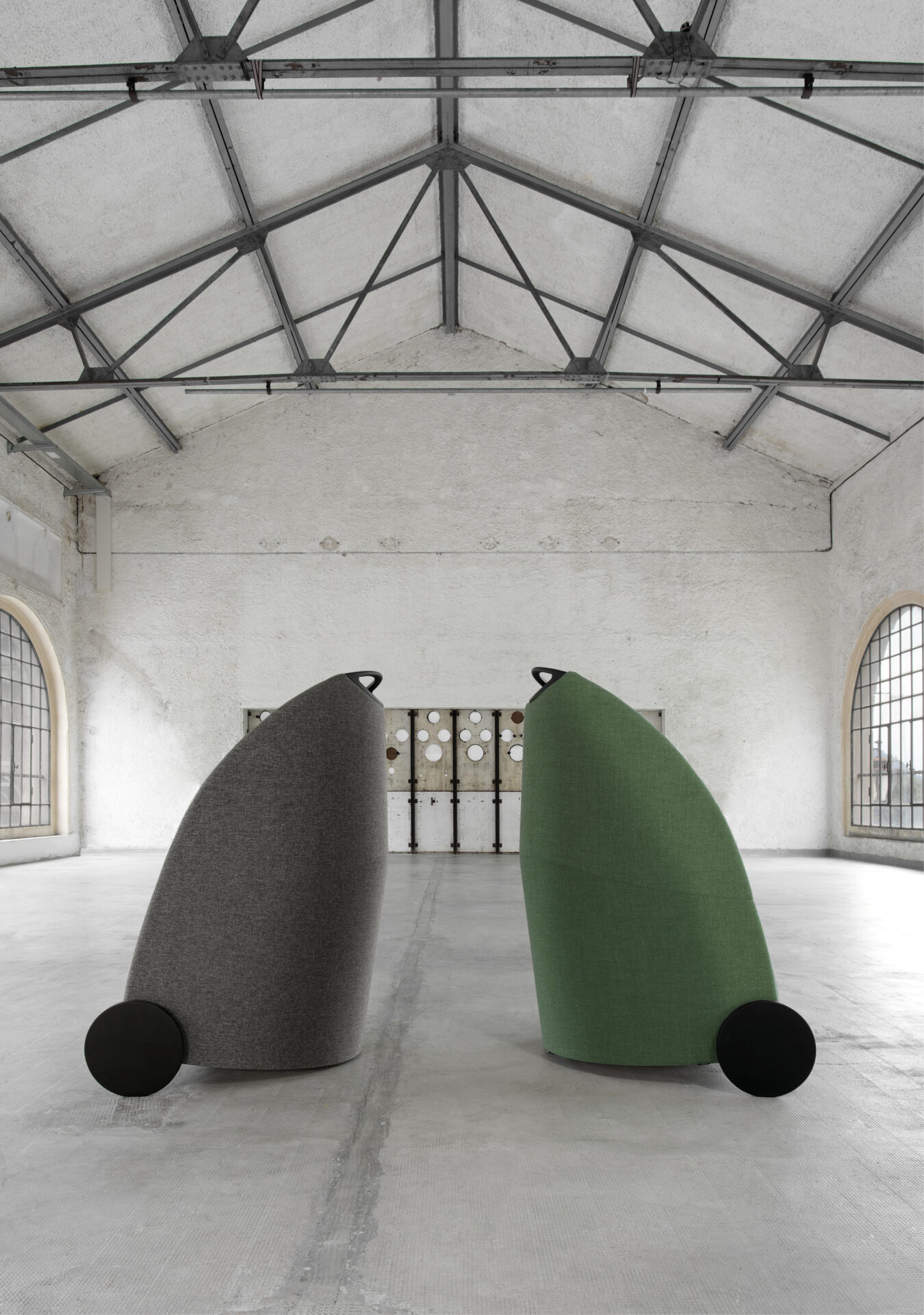 Μια θέση μέσα σε μία άλλη. Η πολυθρόνα Biga είναι μια καρέκλα σχεδιασμένη για να προσφέρει στιγμές ιδιωτικότητας σε όποιον έχει ανάγκη. Το σχήμα και ο αριστοτεχνικός σχεδιασμός του είναι το αποτέλεσμα μιας θαρραλέας σχεδιαστικής διαδικασίας που τροφοδοτείται από πάθος και φαντασία. Η έκδοση με πλάτη σχεδιάστηκε για να μειώνει στο ελάχιστο τους ακουστικούς κραδασμούς, ενώ η έκδοση στους τροχούς είναι έκφραση κίνησης, δυναμικής και συνεχούς εξέλιξης.