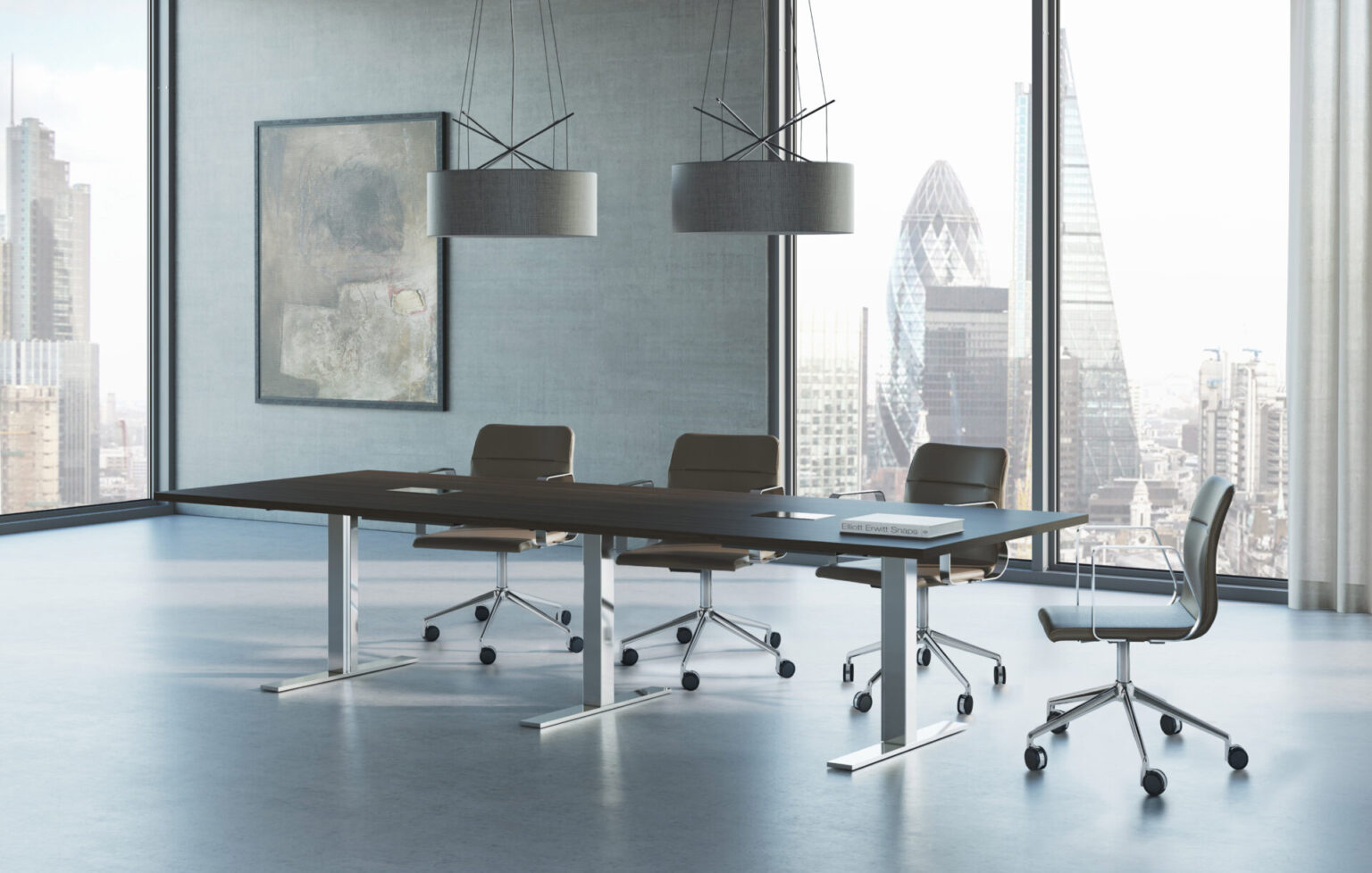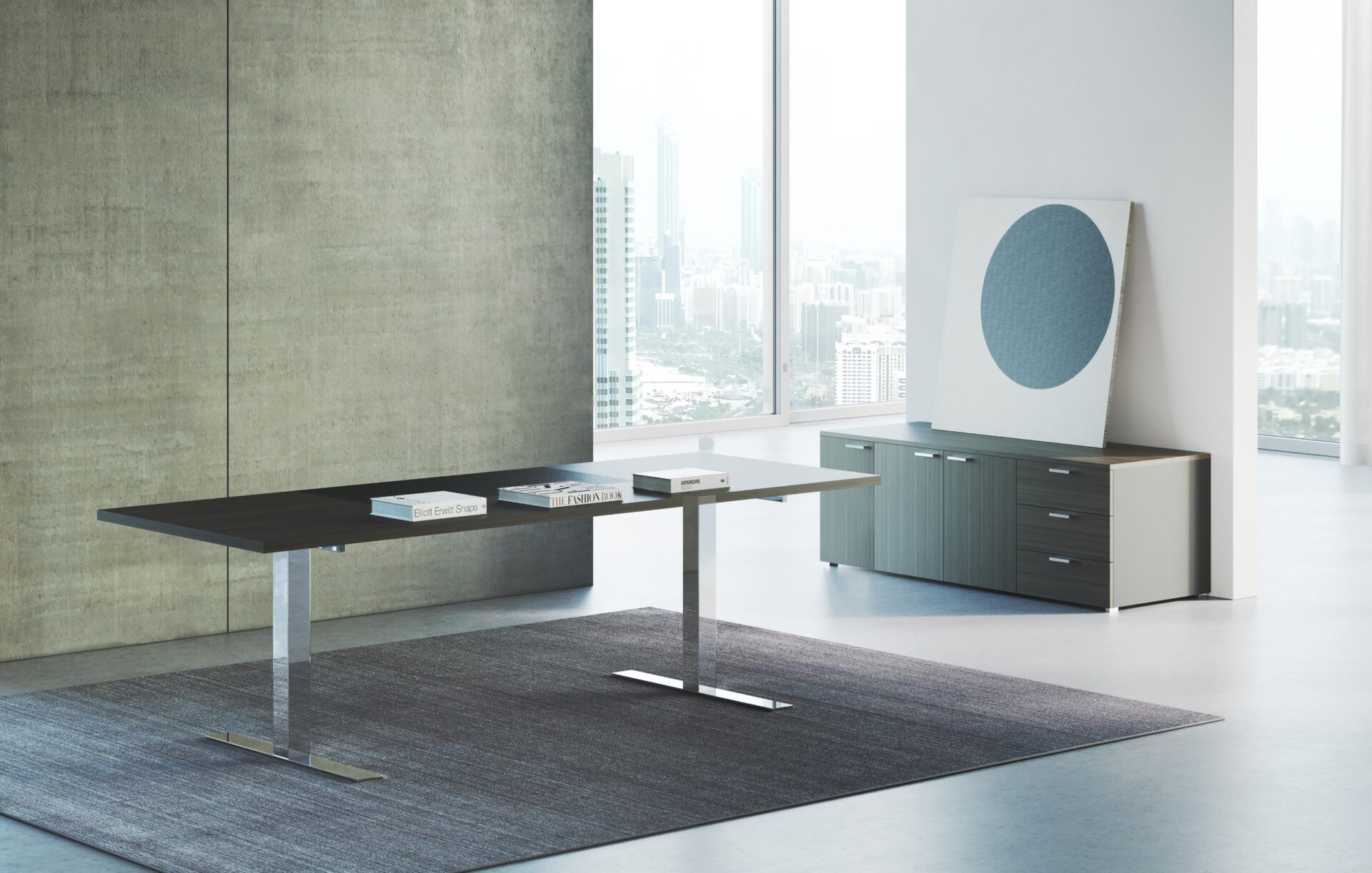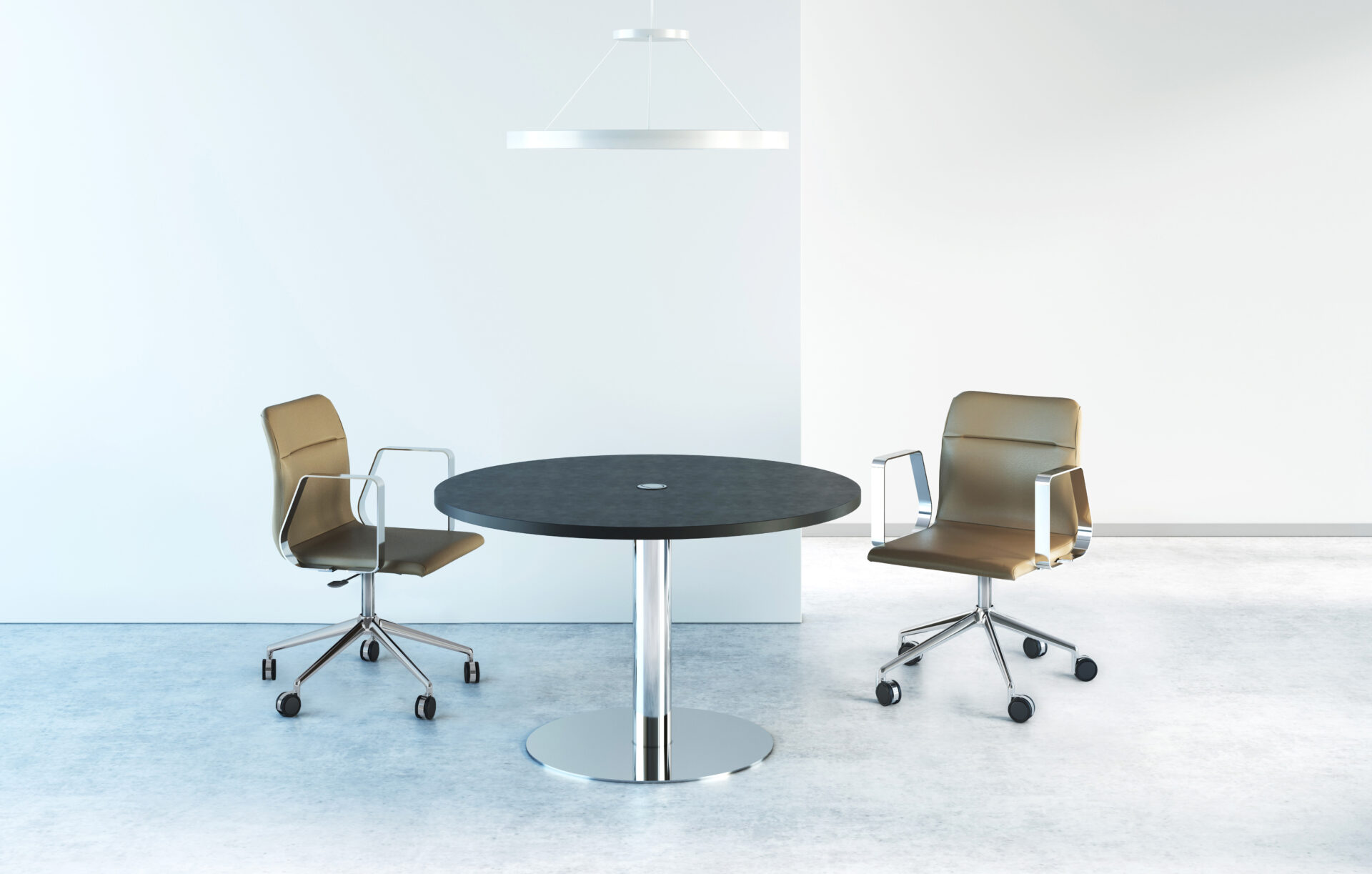 Υπάρχουν επιλογές ορθογώνιων και στρογγυλών τραπεζών με επιφάνειες πάχους 30 mm με φυσικά φινιρίσματα και μια σειρά από λάκες. Η βάση του από χρωμιομένο χάλυβα επιτρέπει στις τράπεζες να προσαρμόζονται σε διαφορετικές απαιτήσεις μεγέθους και σχήματος, καθώς και σε ανάγκες ηλεκτροδότησης και καλωδίωσης.