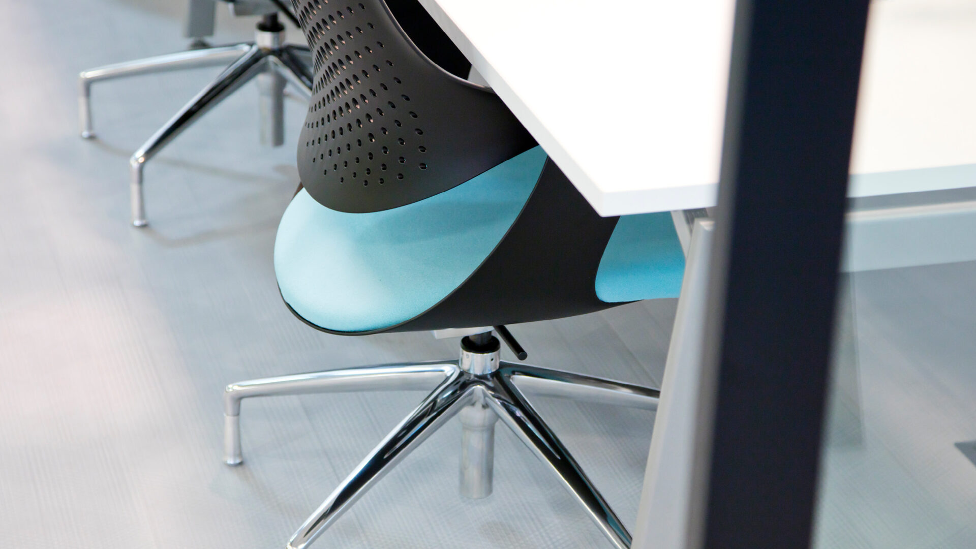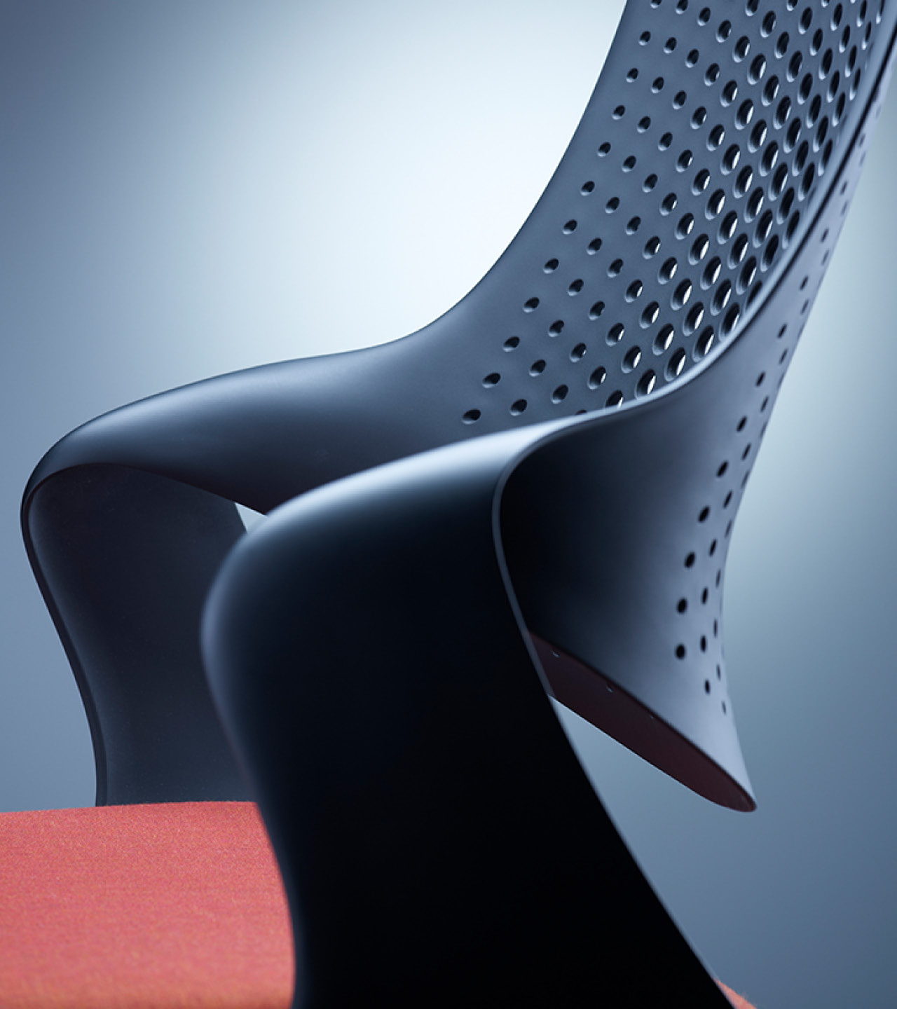 Το κάθισμα εργασίας Coza κατασκευασμένο από ένα οργανικό ενιαίο σχέδιο που περνάει κάτω από το κάθισμα, μέσα από το μπράτσο και πάνω από την πλάτη δημιουργώντας ένα απίστευτα λεπτό και εκλεπτυσμένο σχήμα που συμπληρώνει την ανθρώπινη μορφή.