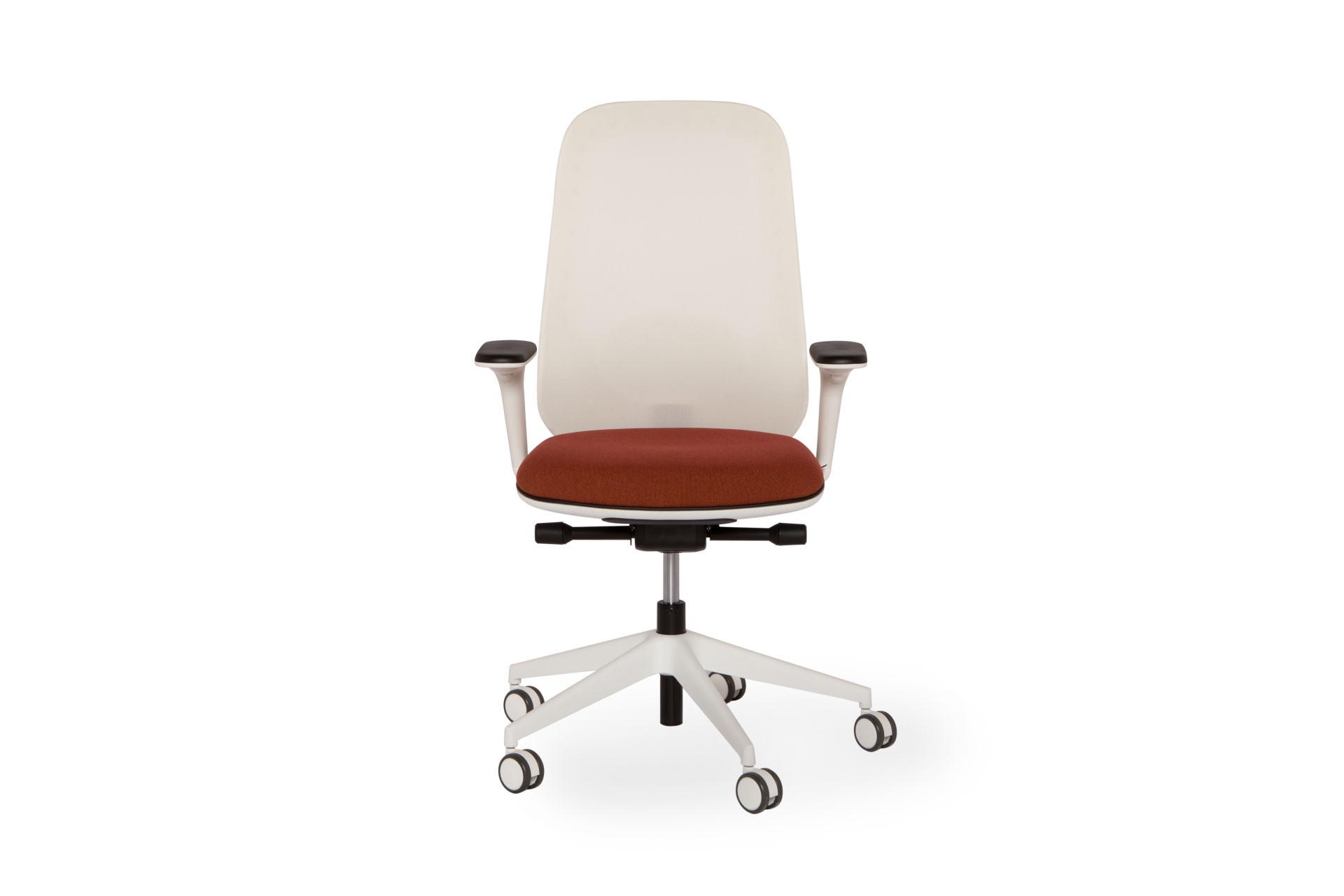 Βάση νάιλον ή αλουμινίου, ροδάκια 65mm. Λευκό ή μαύρο πλαστικό. Πλάτη με πλέγμα διαθέσιμο σε μεγάλη ποικιλία χρωμάτων.