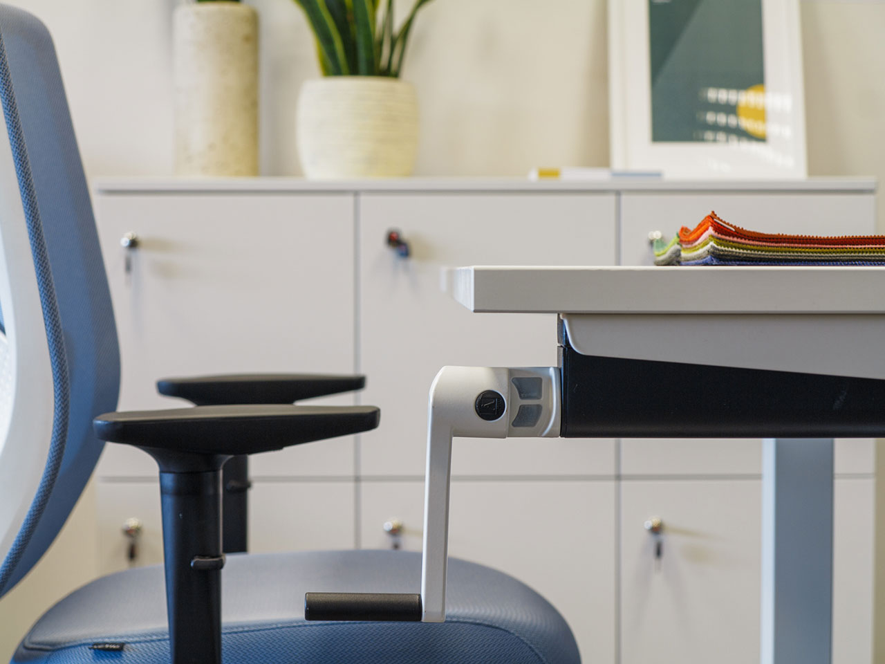 Υπάρχουν πολλές μελέτες που αποδεικνύουν ότι αν εργαζόμαστε όρθιοι για μερικές ώρες κατά τη διάρκεια της εργάσιμης ημέρας αυτό δεν έχει μόνο θετική επίδραση στην υγεία μας, αλλά επίσης βελτιώνει τη συγκέντρωση και την παραγωγική μας ικανότητα. Ένας από τους στόχους της Actiu είναι να αποτελέσει μέρος της αλλαγής που συμβαίνει σε παγκόσμιο επίπεδο στον τρόπο κατανόησης της εργασίας και του περιβάλλοντος της. Όπως εξήγησε ο Javier Cunado, σχεδιαστής του Mobility, η σειρά προσφέρει ένα ευρύ φάσμα των επιφανειών και μοντέλων, τα οποία μπορούν να συνδυαστούν μεταξύ τους, είναι τόσο ευέλικτα ώστε οι διαμορφωτικές δυνατότητες να είναι τεράστιες. Μονό απλό γραφείο, διπλά γραφεία, σταθμοί πολλών θέσεων εργασίας κατά μήκος, συνεχόμενα γραφεία τα οποία μοιράζονται πολλά κοινά στοιχεία, όπως τα κανάλια ηλεκτροδότησης, πάνελ κτλ.