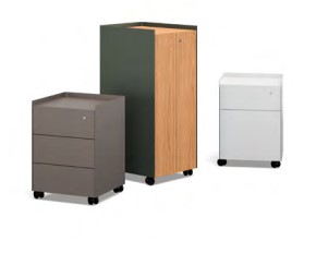 Η συρταριέρα Slide συνδυάζει ποικιλία υλικών και χρωμάτων διαθέτοντας εξωτερικά πάνελ και πλάτες από χάλυβα, με λεπτή βαφή πούδρας ώστε να ταιριάζει με τα πόδια του τραπεζών συμβουλίου. Οι προσόψεις και οι κορυφές των συρταριέρων είναι διαθέσιμες στα ίδια χρώματα όπως και οι επιφάνειες τραπεζών με σκοπό να ταιριάζουν απόλυτα.