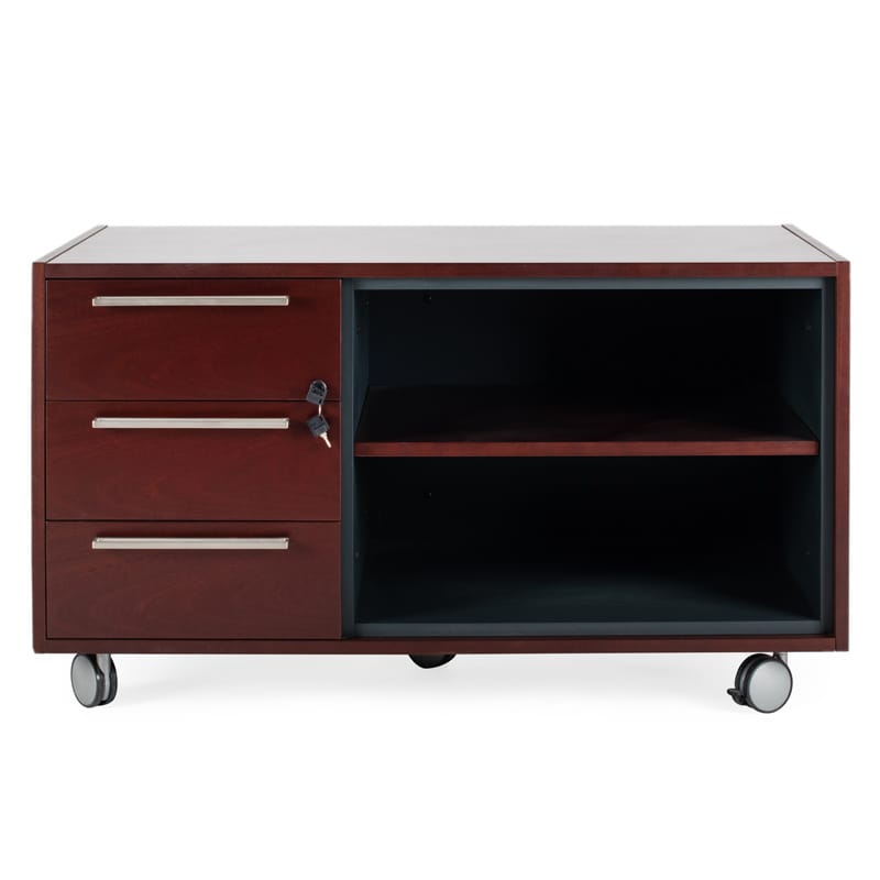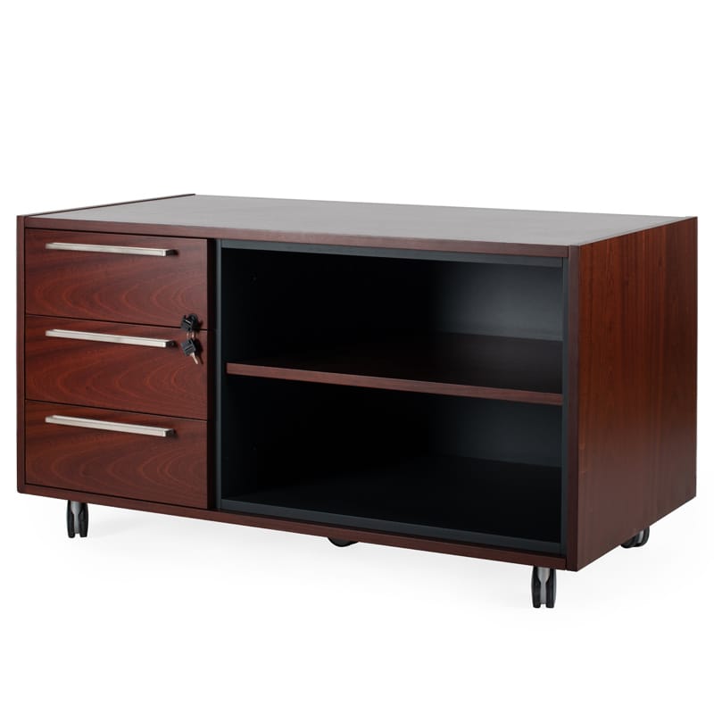 Ερμάριο τροχήλατο, σε σκούρο καφέ χρώμα. Διαθέτει τρία συρτάρια στην αριστερή πλευρά και ένα ράφι στη δεξιά πλευρά. Ο μίνιμαλ σχεδιασμός του και το απλό του στυλ το καθιστούν ιδανικό για οποιονδήποτε εργασιακό ή προσωπικό χώρο με κάθε χρωματικό τόνο.
