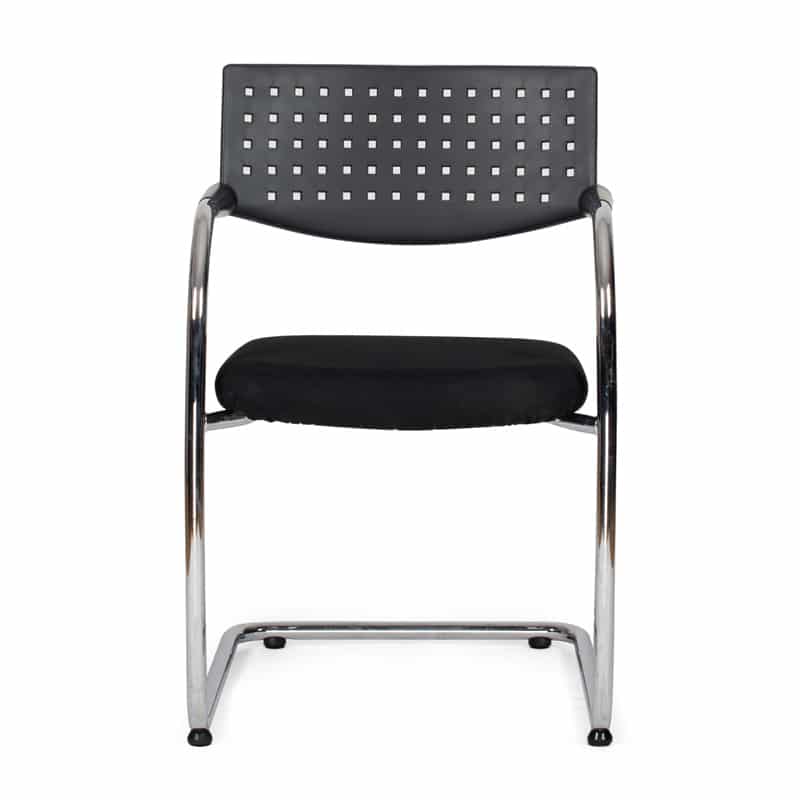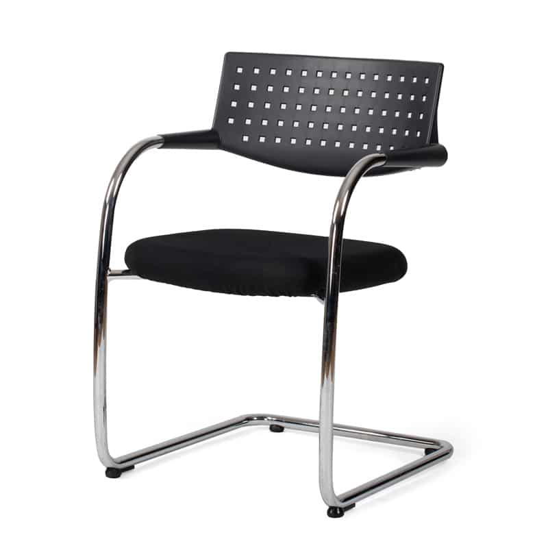 Κάθισμα συνεργασίας Green Office με βάση S στο χρώμα του χρωμίου, από μαύρο ύφασμα.